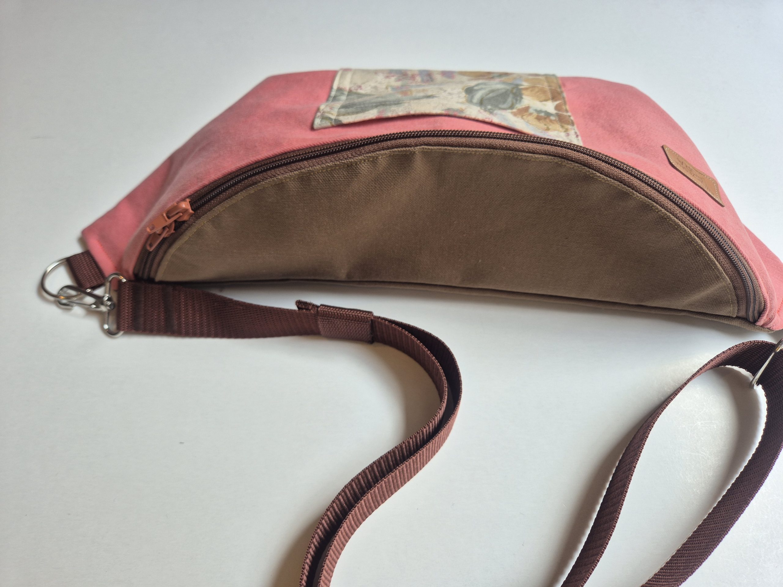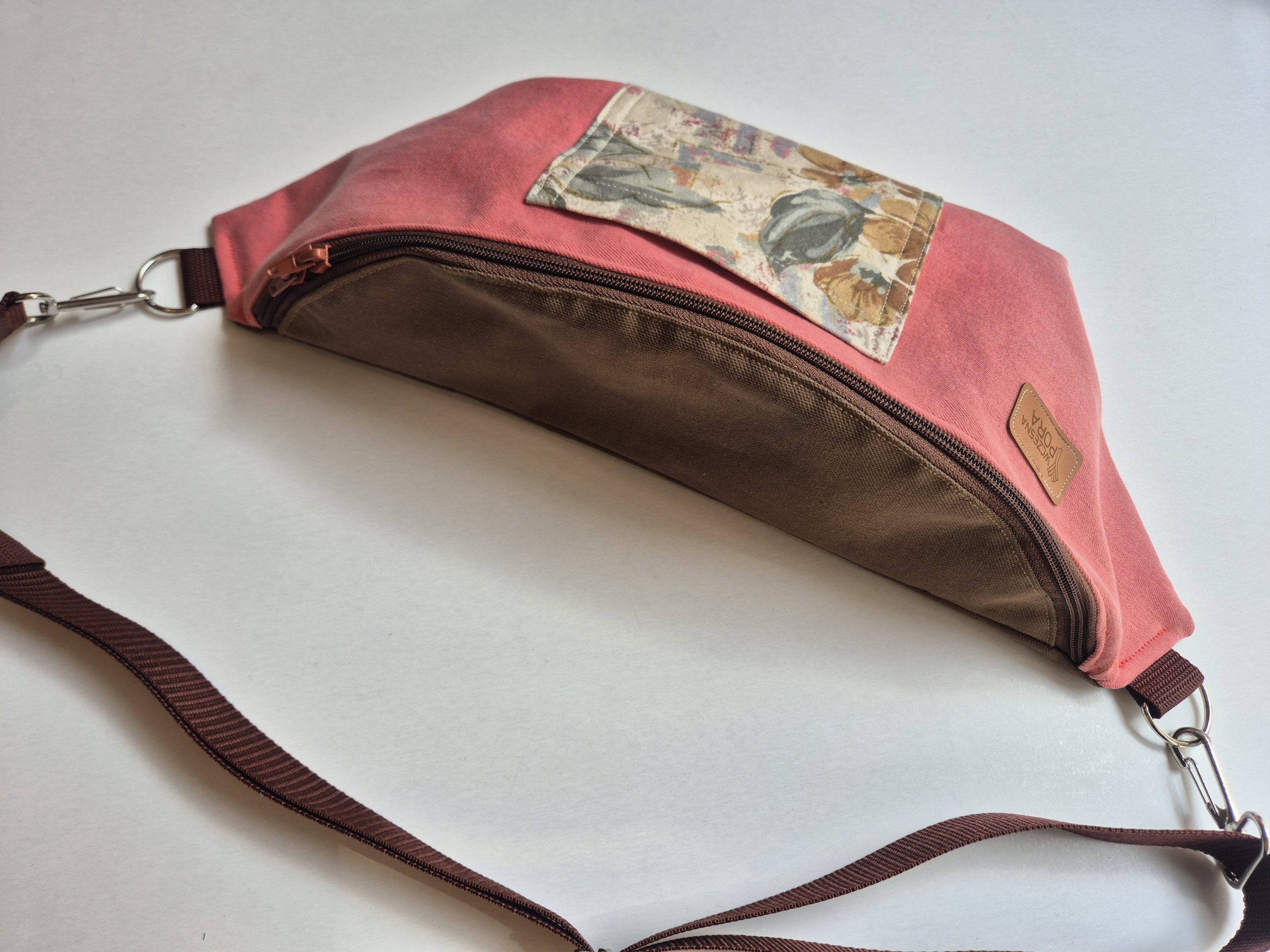 Duża, różowo-brązowa nerka z kwiecistą kieszonką